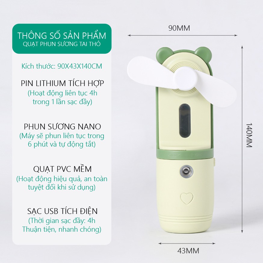 QUẠT PHUN SƯƠNG CẦM TAY MINI, SẠC USB TÍCH ĐIỆN, TIỆN DỤNG