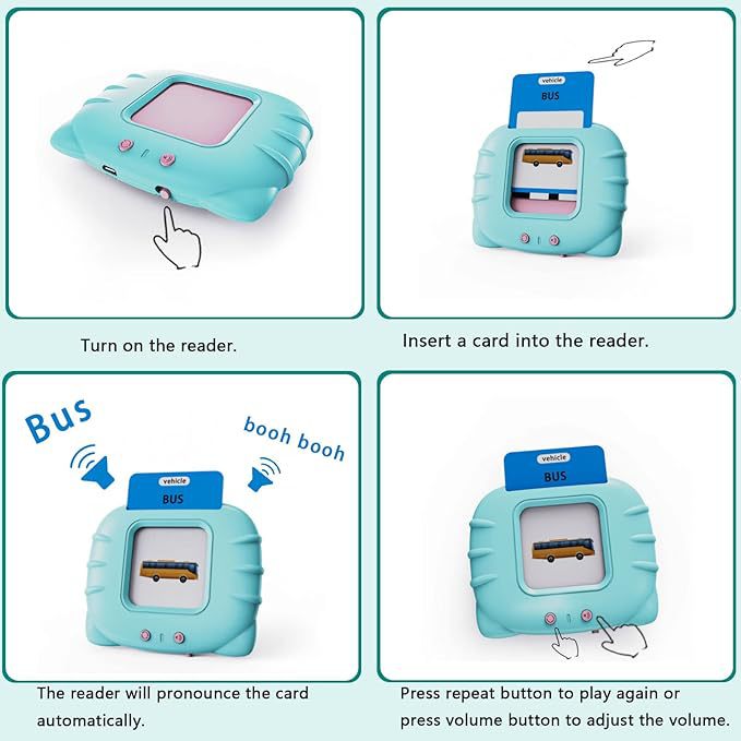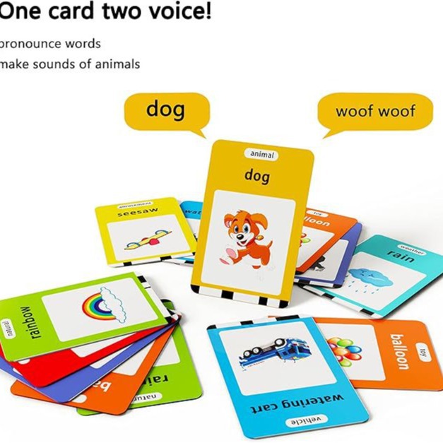 Máy đọc thẻ flashcard tiếng anh là món đồ chơi giúp bé vừa học vừa chơi. Máy có 8 chip đọc to rõ ràng, kèm tiếng kêu mô phỏng âm thanh của các động vật, xe cộ... giúp bé dễ nhớ các từ vựng.