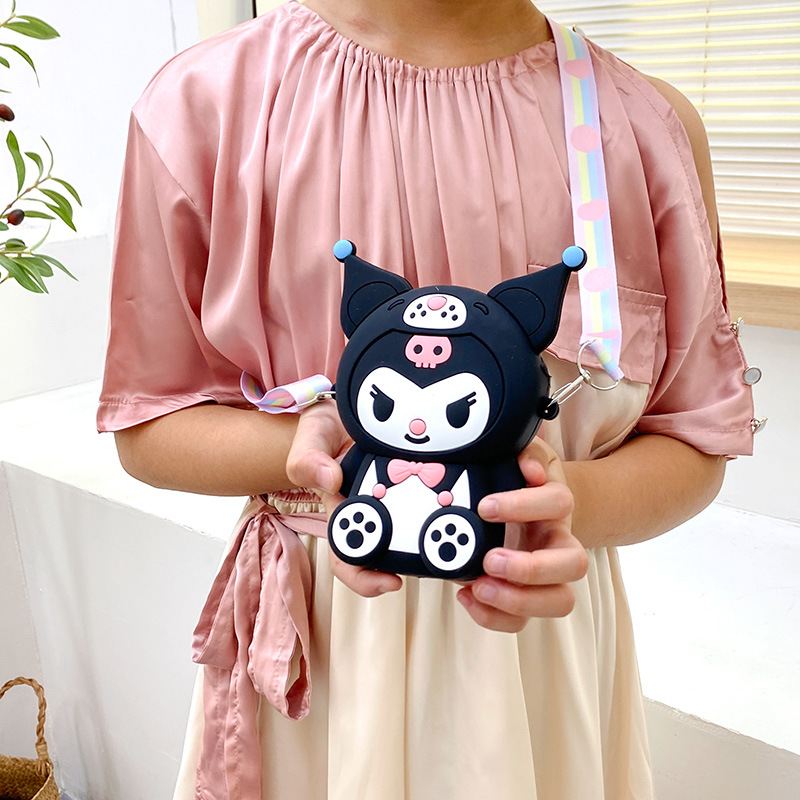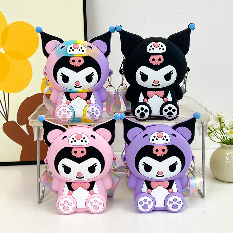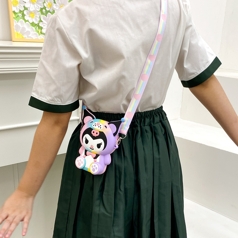 Túi đeo chéo Kuromi xinh xắn, làm từ chất liệu silicon cao cấp, bền đẹp. Thiết kế chống nước, dễ dàng vệ sinh. Màu hồng và tím nổi bật, phù hợp cho các bạn nữ mang đi chơi, đi học.