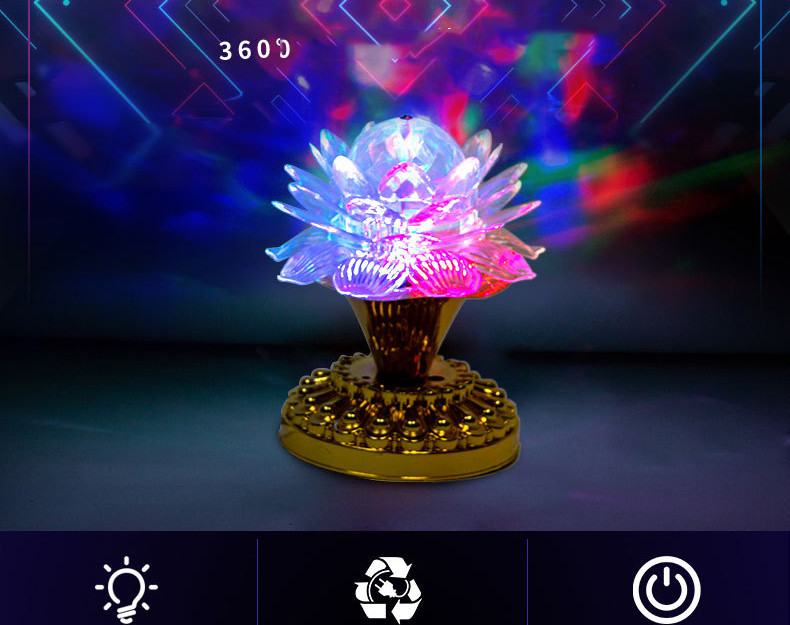 Đèn LED hoa sen xoay 7 màu là một món đồ trang trí độc đáo, kết hợp giữa nghệ thuật và ánh sáng. Với thiết kế hình hoa sen đẹp mắt và khả năng thay đổi màu sắc liên tục, sản phẩm này không chỉ làm đẹp không gian mà còn mang lại cảm giác thư giãn và dễ chịu cho người dùng.