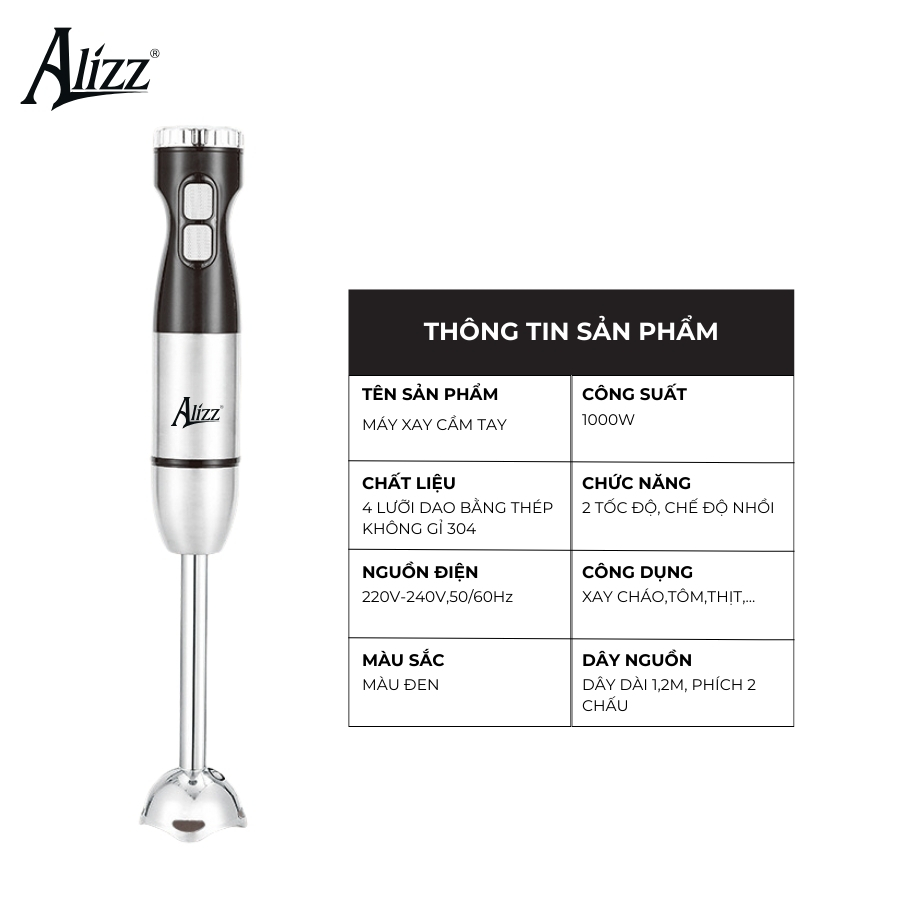 Máy Xay Sinh Tố Xay Thịt Cầm Tay Nút Bấm Vuông 1000W ALIZZ AL-9001B là một công cụ mạnh mẽ và tiện lợi cho việc chế biến thực phẩm trong gia đình. Với công suất lớn, tính năng điều chỉnh tốc độ vô cấp và lưỡi dao thép không gỉ sắc bén, máy xay này mang đến cho bạn khả năng xay nhuyễn, mịn màng mọi loại thực phẩm, từ trái cây đến thịt, rau củ, và nhiều món ăn khác.