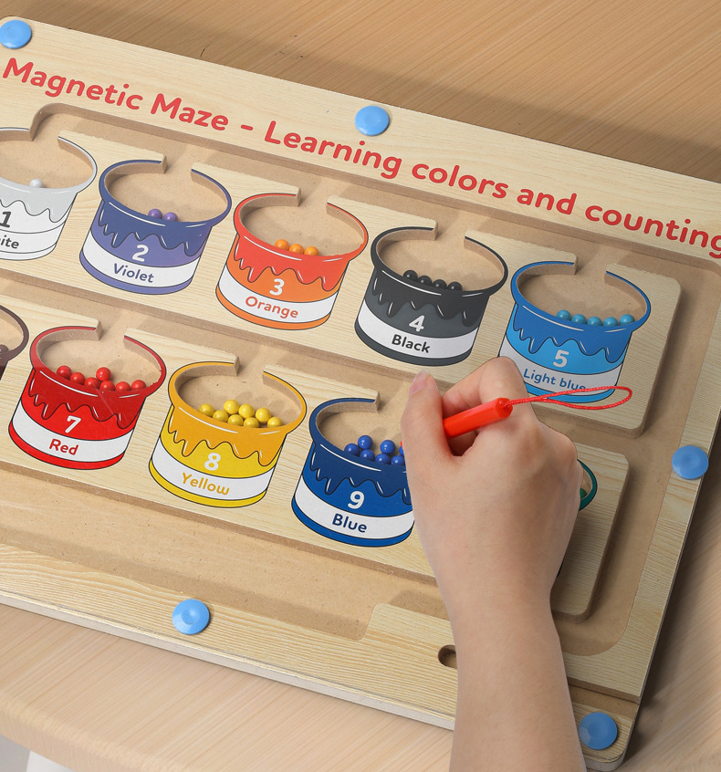 Bảng Bút Đếm Từ Tính Bằng Gỗ Cho Trẻ Em, Phân Loại Màu Sắc là một công cụ học tập thông minh, sáng tạo và an toàn, được thiết kế đặc biệt để giúp trẻ em từ 3 tuổi trở lên học cách đếm số, nhận diện màu sắc, và phát triển các kỹ năng phân loại một cách dễ dàng và thú vị. Sản phẩm này không chỉ hỗ trợ bé trong việc làm quen với các con số mà còn khơi dậy sự tò mò, khuyến khích trẻ phát triển tư duy logic và khả năng sáng tạo qua những trò chơi học tập bổ ích.