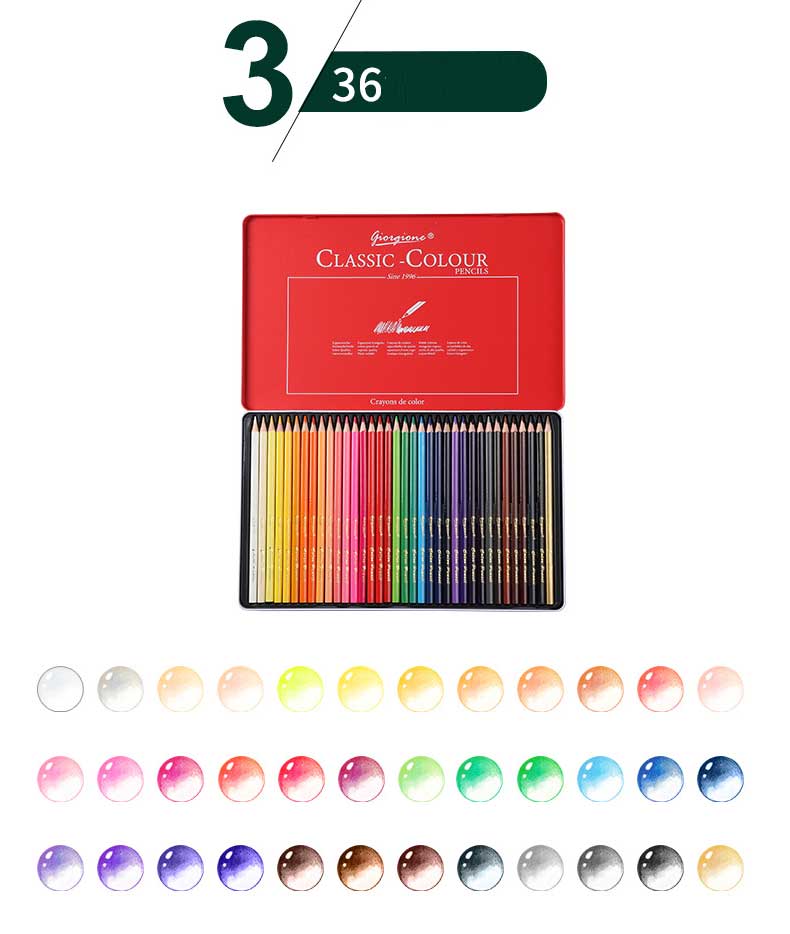 Bút Chì Khô Giorgione Hộp Thiếc Cao Cấp Mới 36 Màu là bộ bút chì màu chất lượng cao, được thiết kế đặc biệt để đáp ứng nhu cầu vẽ, tô màu và sáng tạo của các nghệ sĩ nhỏ tuổi và người lớn. Với 36 màu sắc đa dạng và sắc nét, sản phẩm này sẽ mang đến cho bạn những trải nghiệm tô màu tuyệt vời và đầy cảm hứng.