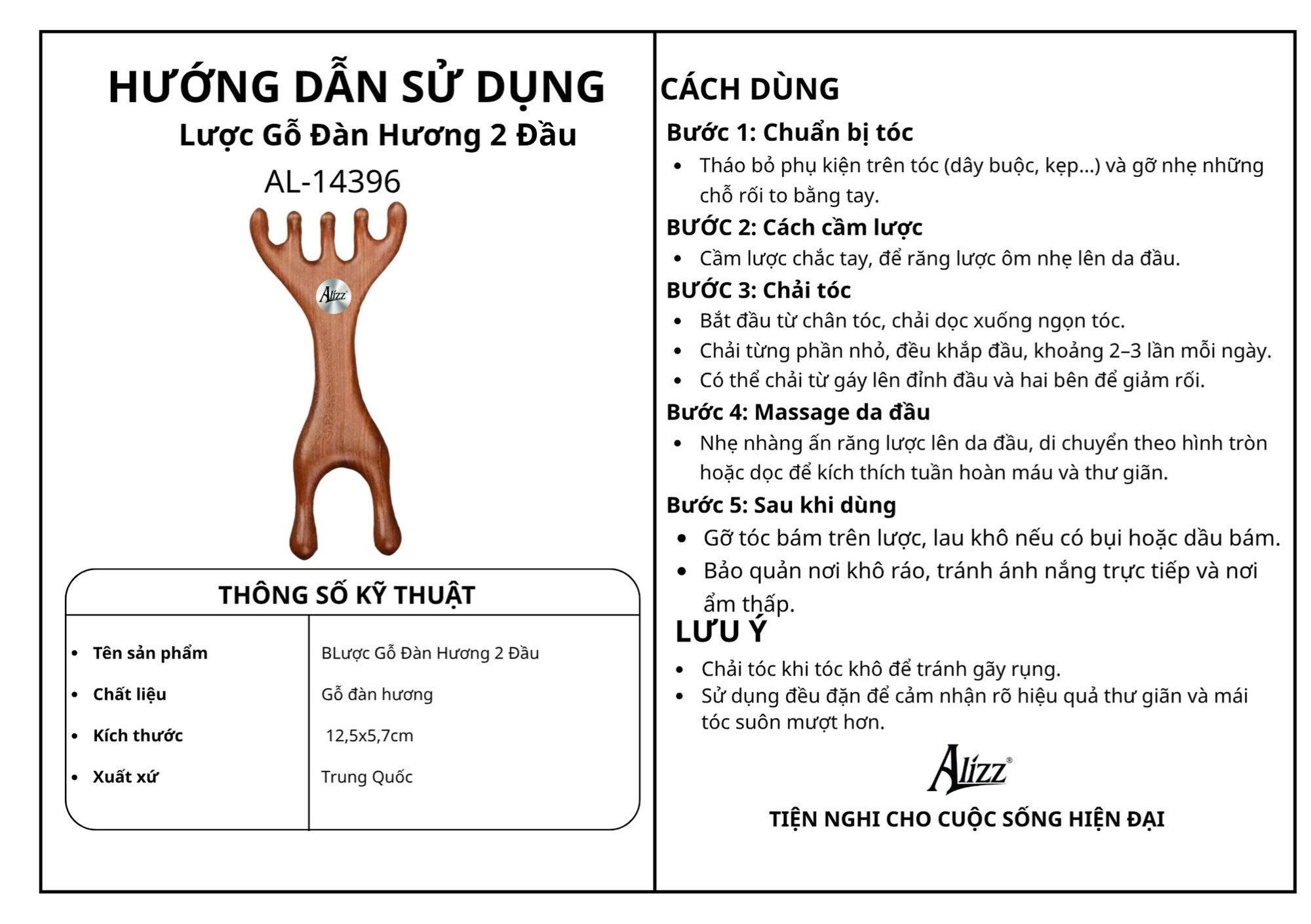 Chải tóc nhẹ nhàng từ chân đến ngọn, mỗi ngày 2–3 lần. Sử dụng đều đặn để cảm nhận sự thay đổi tích cực của mái tóc và tinh thần.