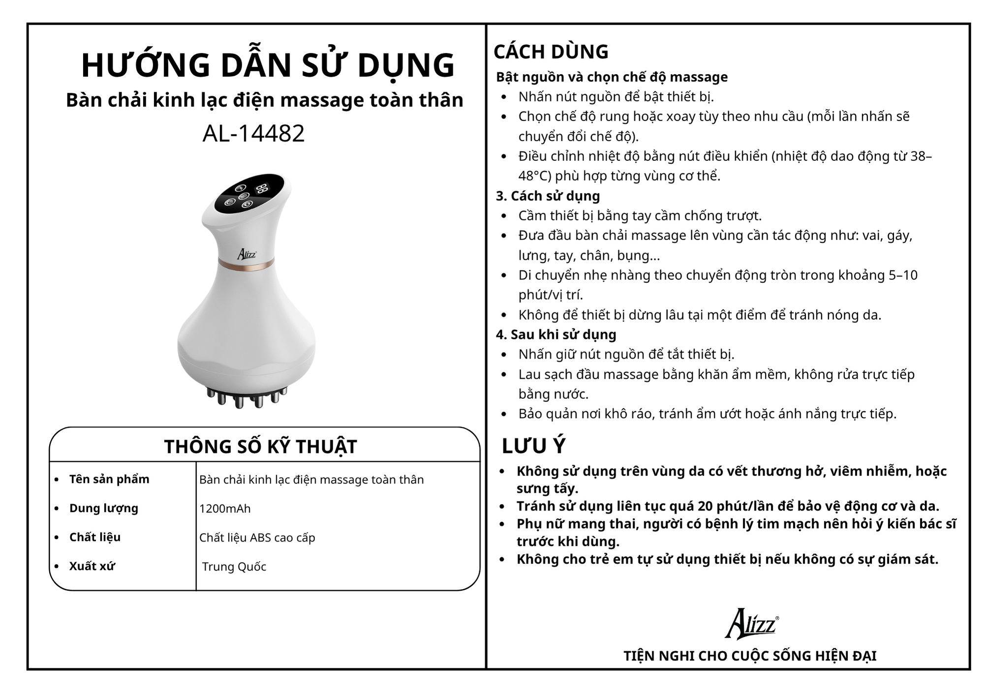 ALIZZ AL-14482 – người bạn đồng hành lý tưởng giúp chăm sóc sức khỏe toàn diện và thư giãn mọi lúc mọi nơi
