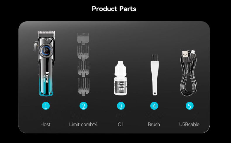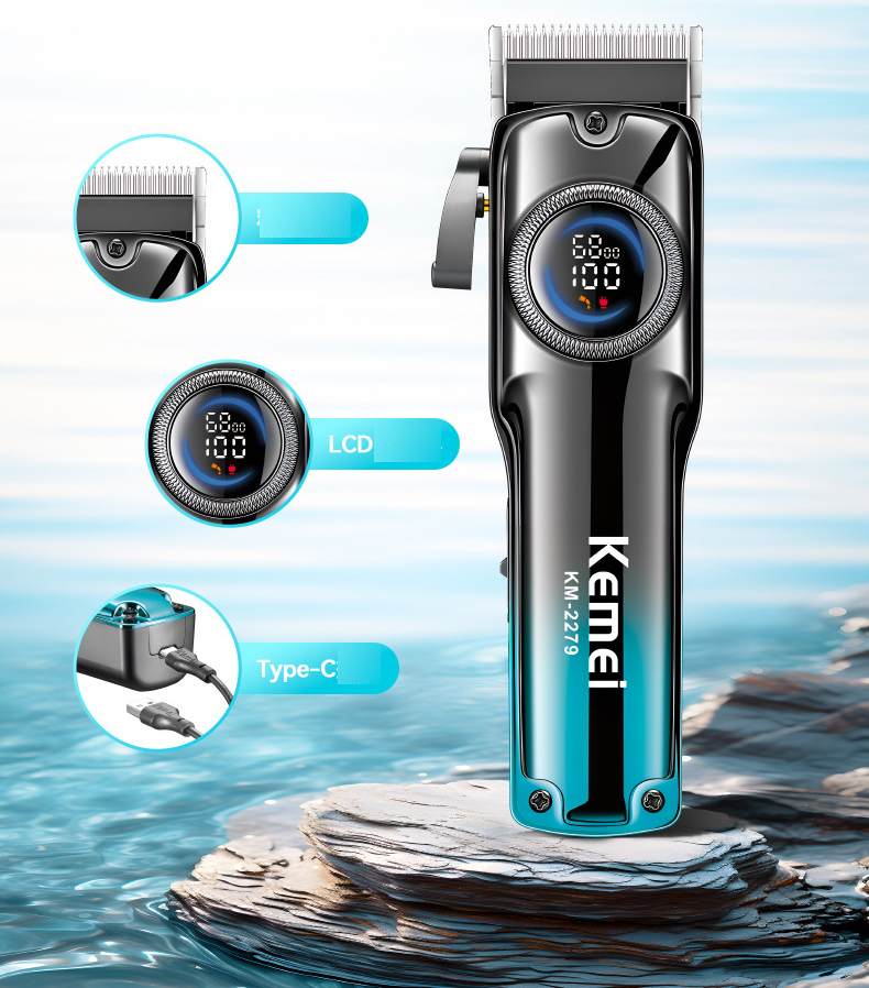 Tông đơ cắt tóc Kemei KM-2279 – Màn hình kỹ thuật số, Sạc USB, Pin Lithium 2000mAh – Phiên bản tiêu chuẩn