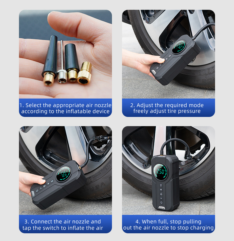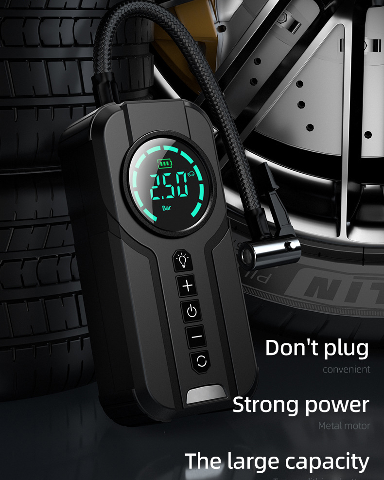 Máy bơm hơi cầm tay không dây, thiết kế gọn nhẹ, dễ sử dụng và tiện lợi trong các tình huống khẩn cấp. Phù hợp sử dụng cho ô tô, xe máy, xe đạp và các vật dụng bơm hơi khác.