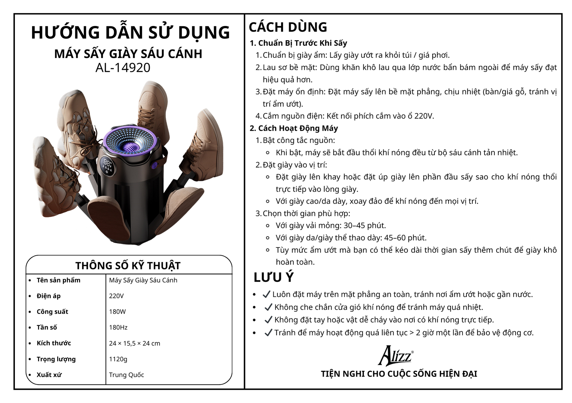 Máy Sấy Giày Sáu Cánh ALIZZ AL-14920