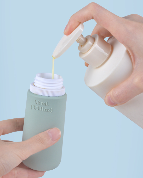 Bộ 4 chai chiết mỹ phẩm đa năng chất liệu silicon mềm dẻo, dung tích 96ml, thiết kế nhỏ gọn, tiện lợi mang theo khi du lịch, công tác, tập gym, giúp bạn dễ dàng chiết xuất và mang theo các loại sữa tắm, dầu gội, lotion, sữa rửa mặt... mà không lo rò rỉ.