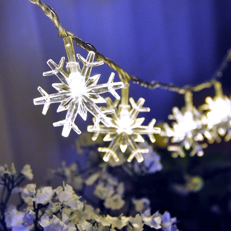 Đèn led hình bông tuyết. Đèn led hình bông tuyết chịu được mưa nhỏ, chịu va đập cao, ánh sáng tối đa,dây đèn nháy với lõi làm bằng đồng sẽ bền hơn và ánh sáng từ đèn LED cũng sẽ sáng hơn, rực rỡ hơn rất nhiều so với dây đèn LED với lõi dây làm bằng sắt.